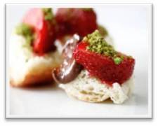 Chocolate shells or mini tartlets, chocolate pudding or mousse, strawberry chunks