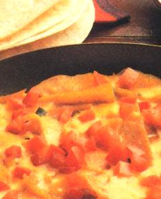 Cook until cheese is just melted and eggs are set but still moist. Top with tomato. Sprinkle with chopped herbs and serve. Good with warm tortillas and mild salsa.